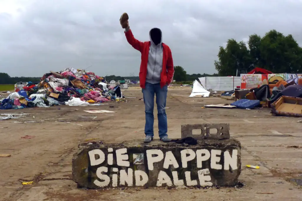 Die Handlung des Sabotage-Videos wurde hier erweitert um eine fiktive Entführung des Innensenators Körting, der in Anlehnung an das berühmte Schleyer-Foto der RAF ein Schild hält mit der Aufschrift »Seit 4 Tagen nur vegane Pampe«. Ein schwarzhumoriges Spiel mit Bildern von damals, nur dass im Liebigfilm die Körtingfigur zum Schluss freigelassen wird. Benno war das einzige pappsatt-Mitglied bei diesem Film, es wurde aber als pappsatt-Video veröffentlicht. Wie wurde das denn in der Gruppe diskutiert?