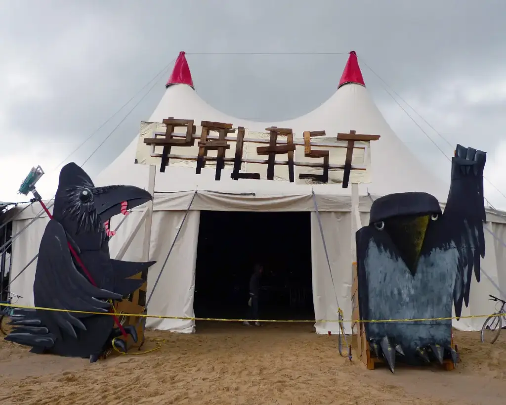 Mao: Wir machen uns total viel Gedanken, was wir transportieren wollen. Im ersten Jahr hieß das Zelt, das wir gestalten, noch »Palast der Republik«. Wir haben uns inhaltlich damit auseinandergesetzt, auch mit dem Berliner Stadtschloss, das jetzt wieder erbaut werden soll, nachdem der Palast der Republik abgerissen wurde. Dieses Vernichten von DDR-Geschichte und gleichzeitig die Wiedererrichtung eines feudalistischen Statusobjekts für Milliarden von Euros.