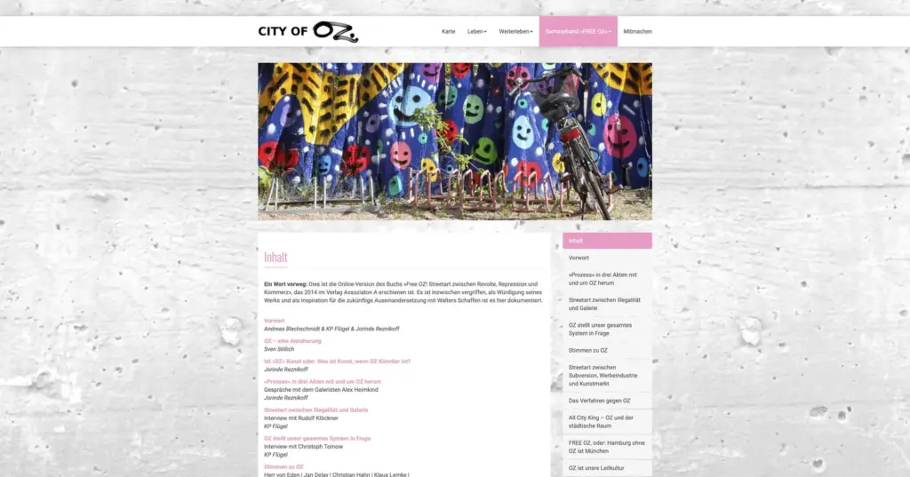 »OZ hat uns die Stadt vererbt«. Das stand auf einem Banner bei der Beerdigung von Walter Fischer im September 2014. Damals entstand die Idee, das Werk von OZ in Hamburg zu dokumentieren – und zwar an dieser Stelle, im Internet, auf einem Stadtplan, auf »CITY OF OZ«. Jeder, der mag, so unser Plan, wird Fotos von Walters Zeichen und Gemälden machen und hier hochladen können, worauf diese auf dem Stadtplan verzeichnet werden. Das Ergebnis, verfeinert mit historischen Fotos: ein wachsendes Abbild von OZ‘ Schaffen, das erste überhaupt in dieser Größe und Auflösung, all City.