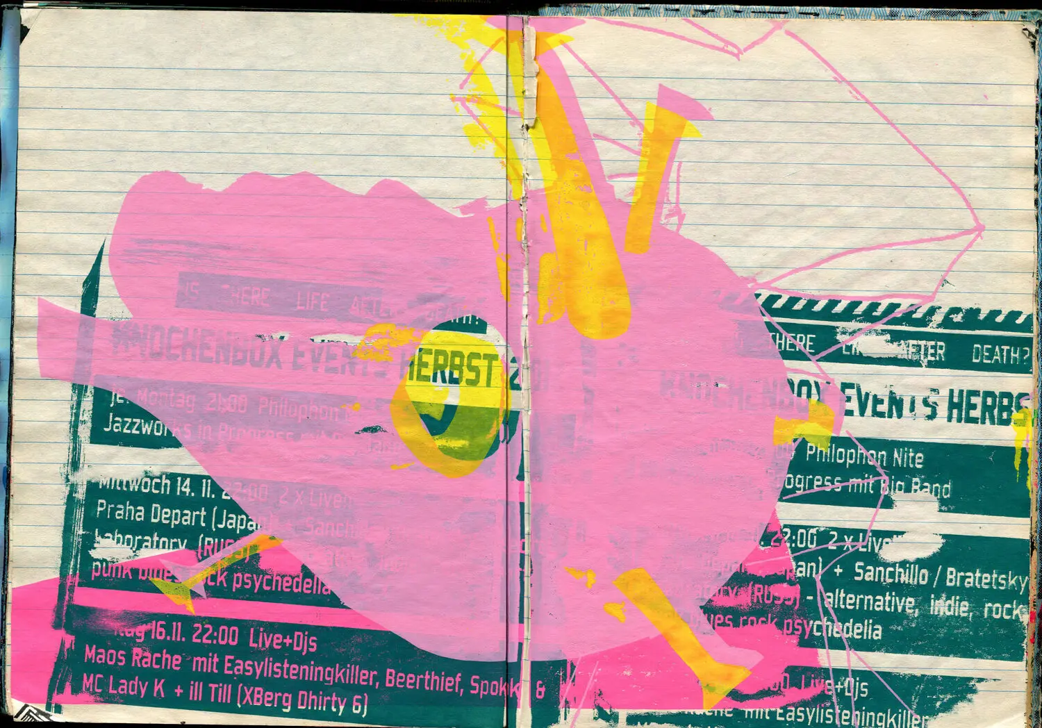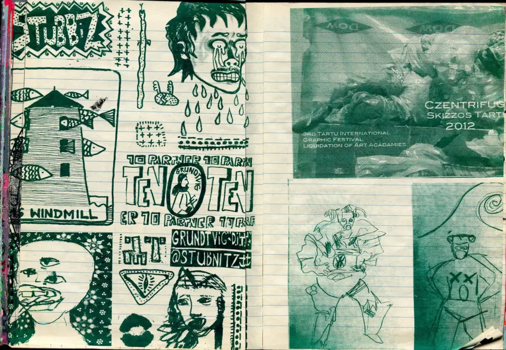Siebdruck-Tagebuch aus der Czentrifuga-Druckwerkstatt. Motive von ca. 2011-2013.