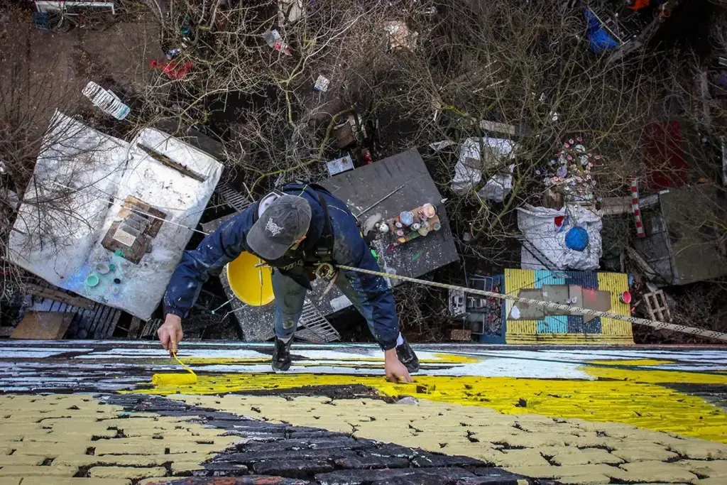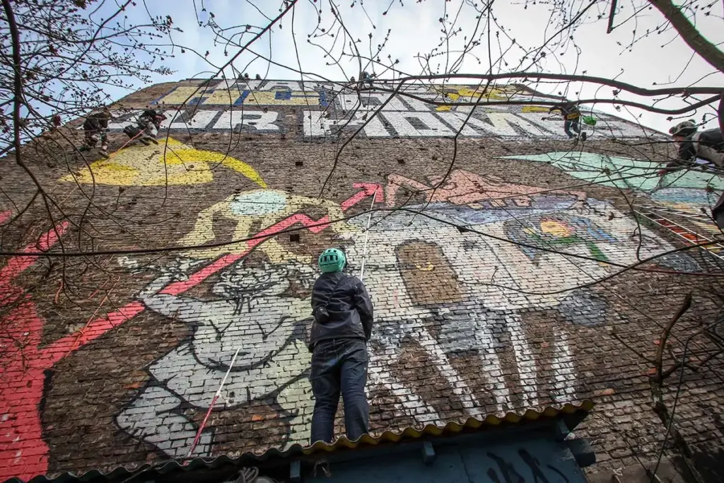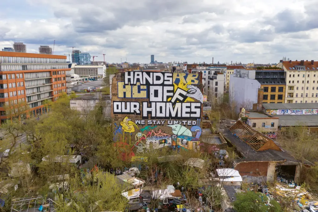 Das Wandbild ist aus der Idee heraus entstanden, mehr Öffentlichkeit für diesen Freiraum herzustellen und deutlich sichtbar zu machen, dass es Alternativen zur kapitalistischen Stadtentwicklung gibt, die wichtig sind zu verteidigen. Gemalt wurde es innerhalb einer Woche von einem Zusammenschluss Berliner Sprayer*innen, Wandmalgruppen und Künstler*innen, die sich mit dem Ort seit vielen Jahren verbunden fühlen. Sie sind wie viele andere mit ihm großgeworden, haben dort gefeiert, gelebt und gearbeitet und werden es weiterhin tun.