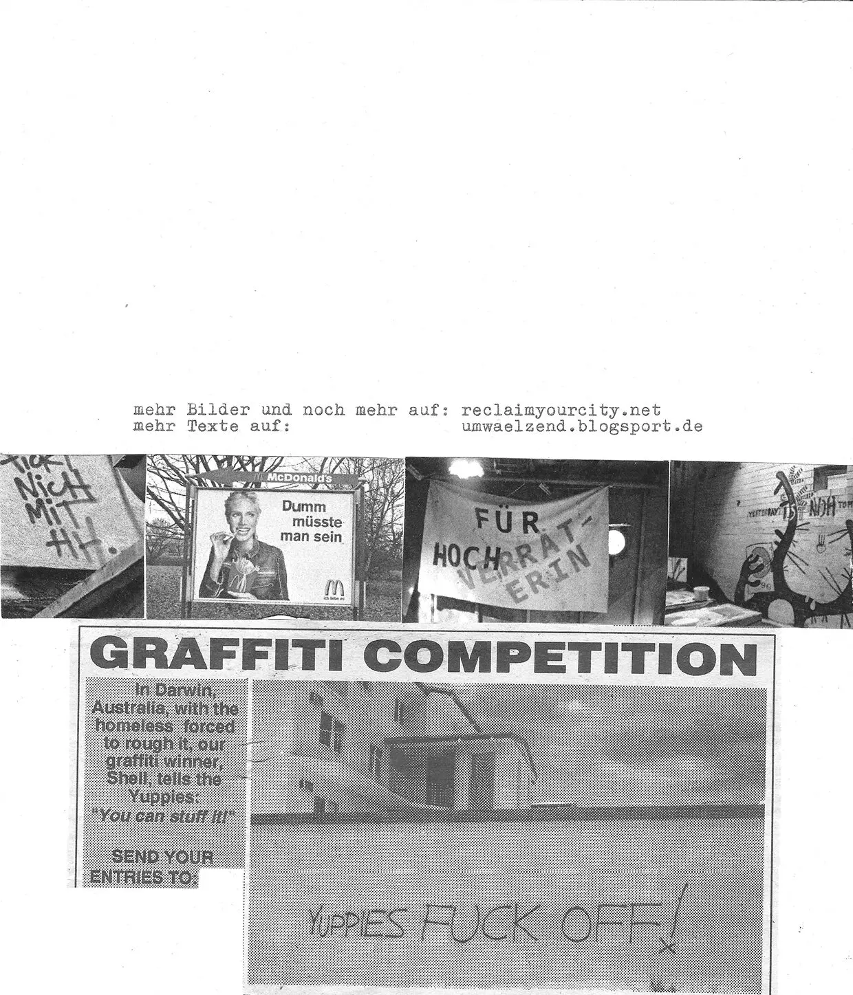 Das Zine erschien anlässlich der Ausstellung Reclaim Your City 2012 im Gängeviertel Hamburg