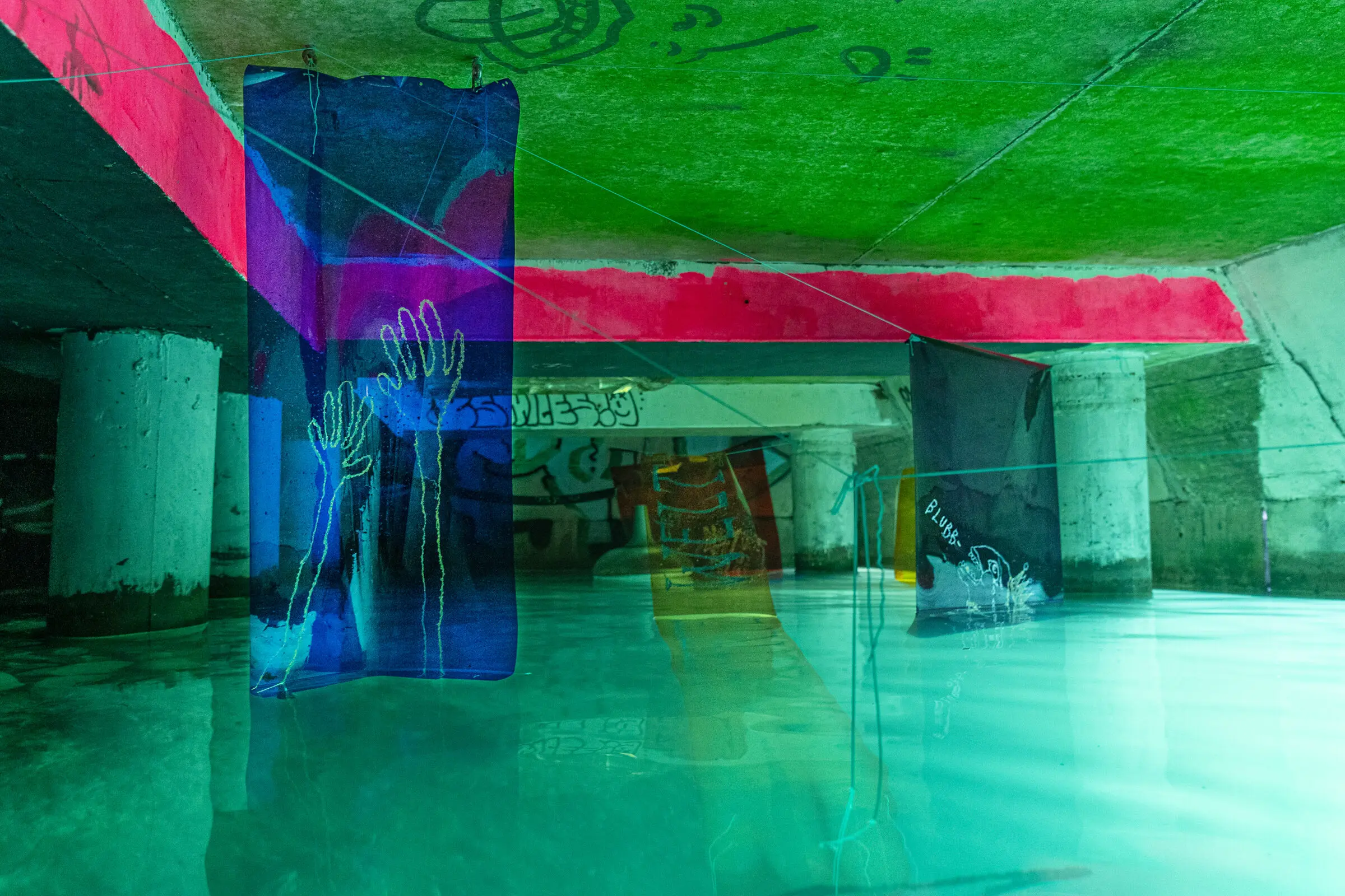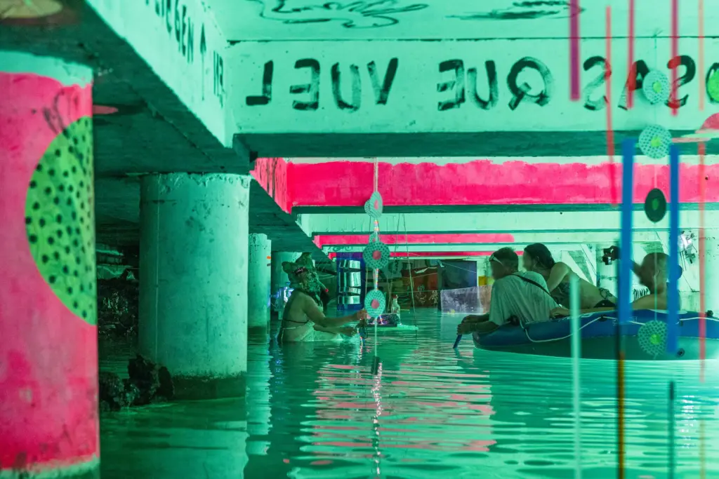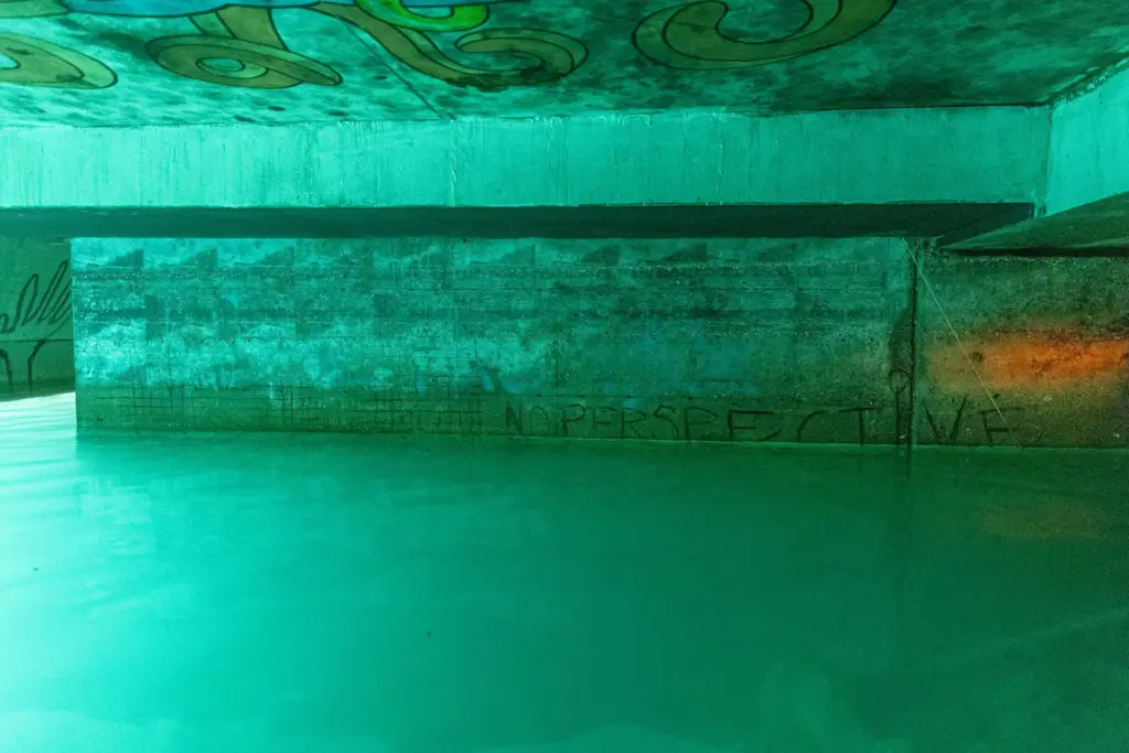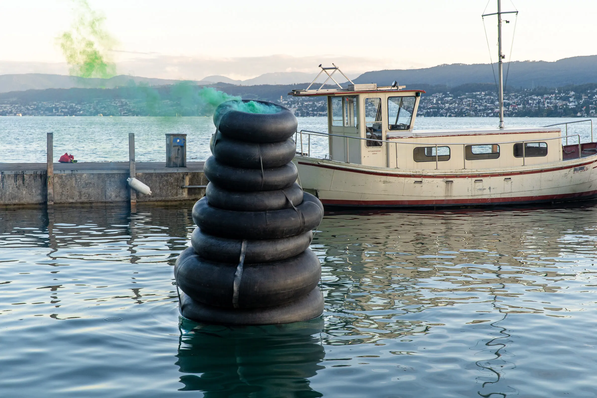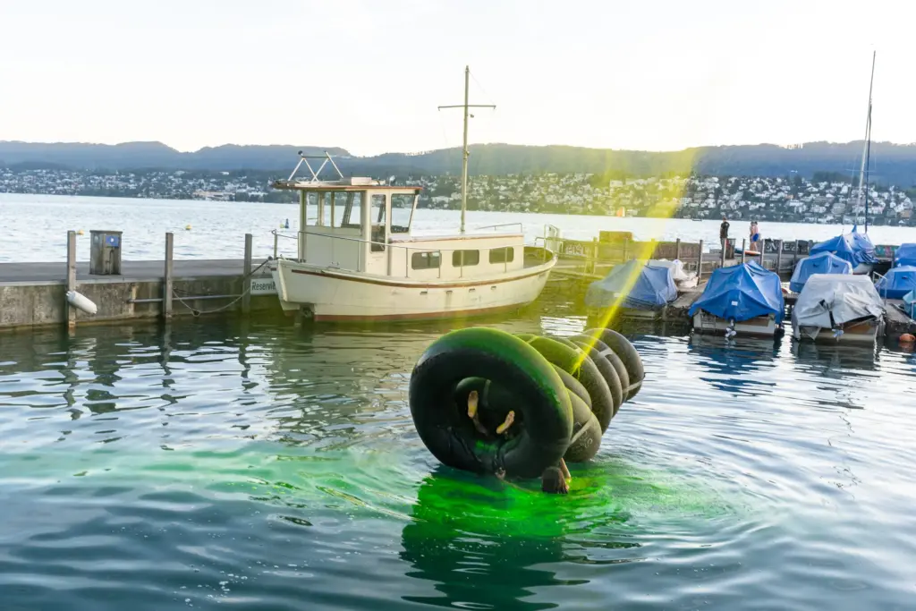 Die Unterwassergalerie liegt an der sogenannten Goldküste der Superreichen. Eine geheime Stelle am Zürichsee. Sie eignet sich Raum an und stellt Besitzverhältnisse in Frage. Eine verkehrte Welt, eine Utopie von gerechter Verteilung.