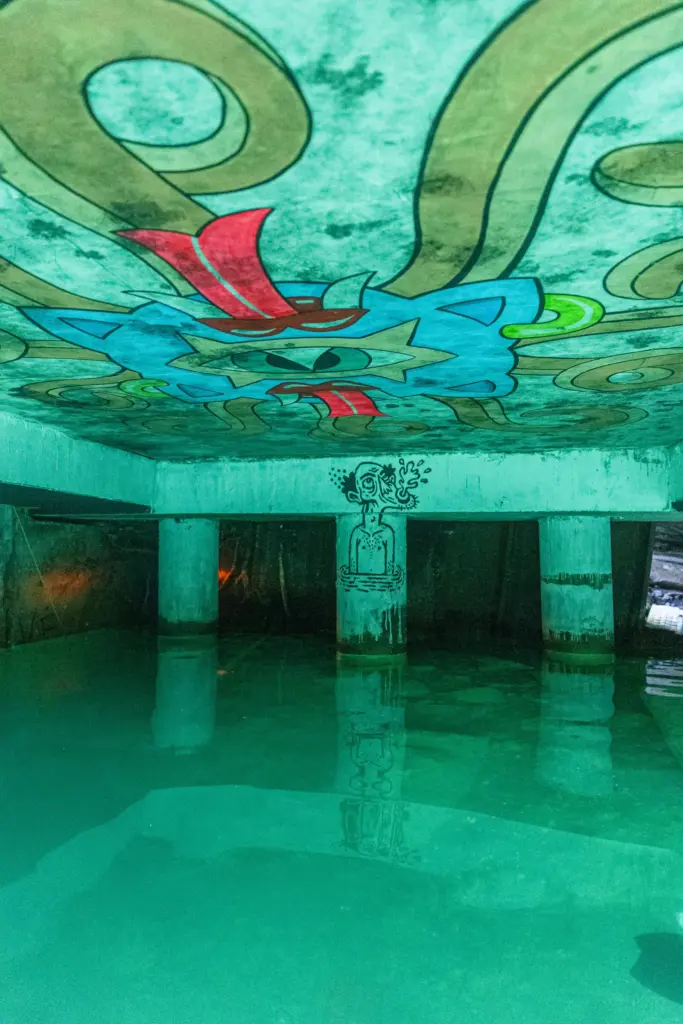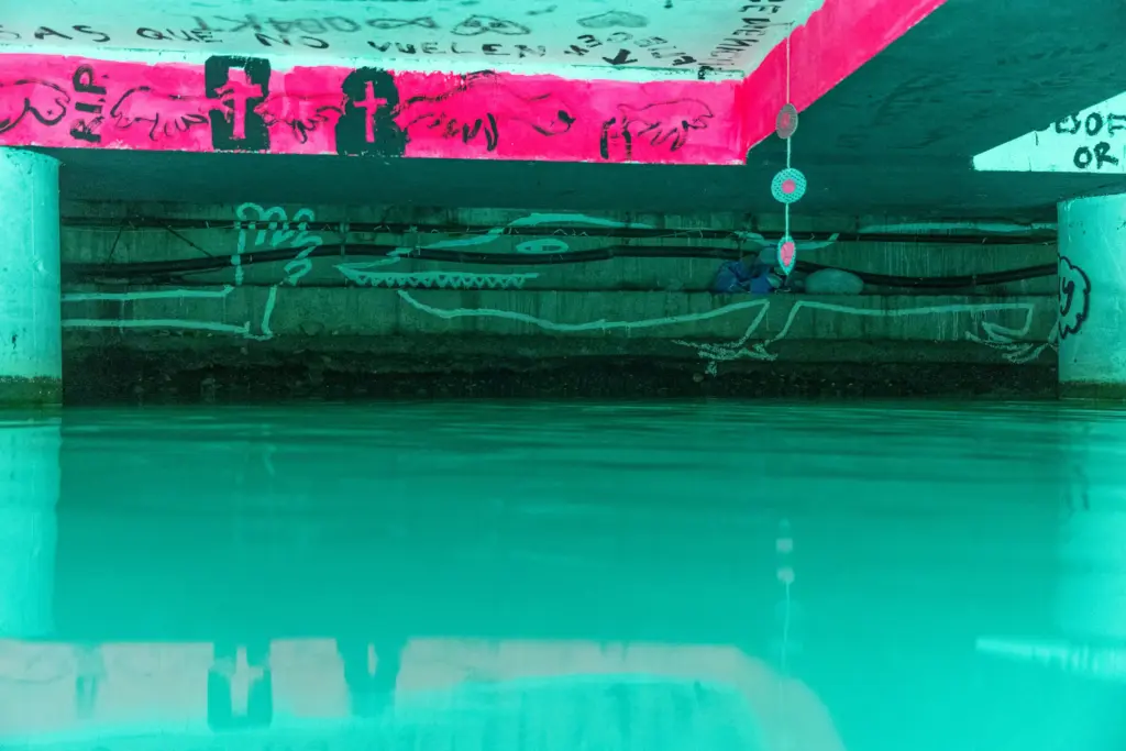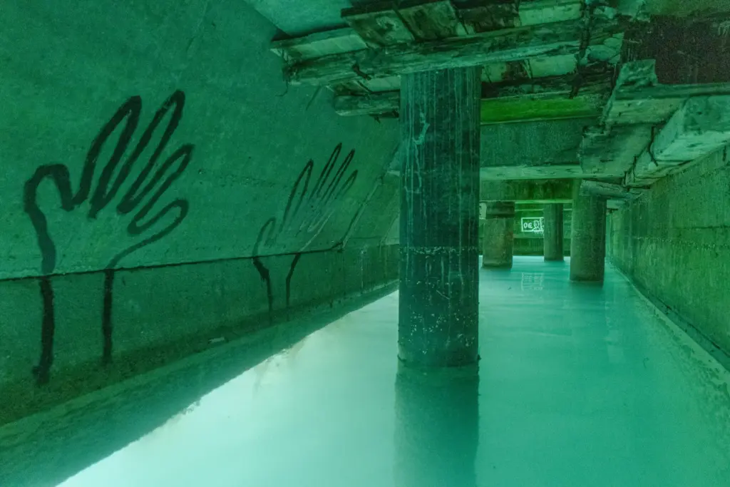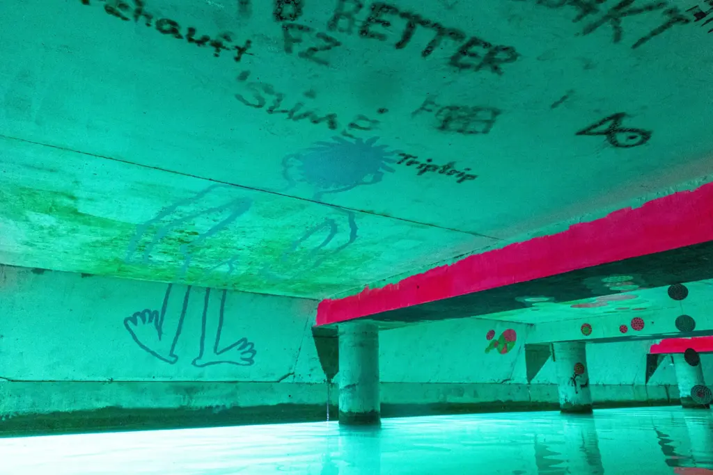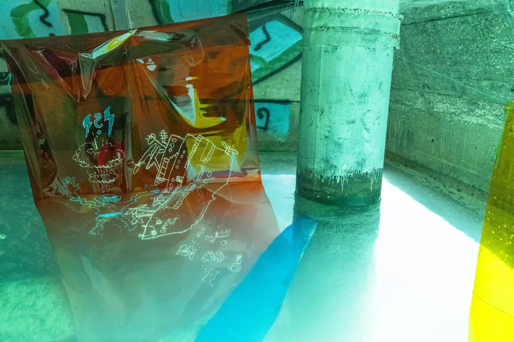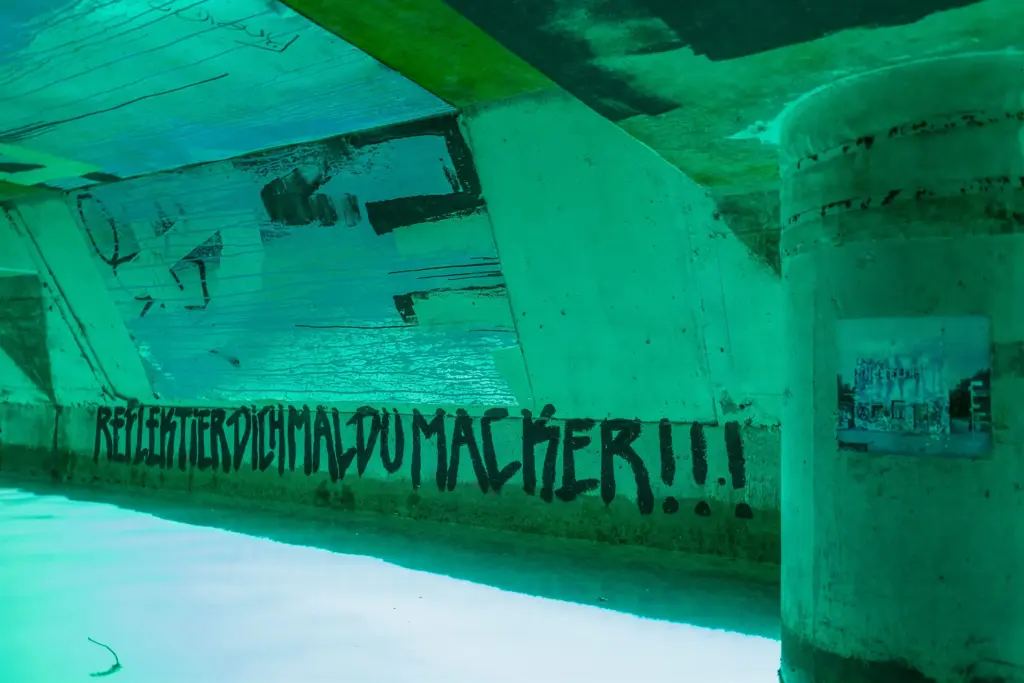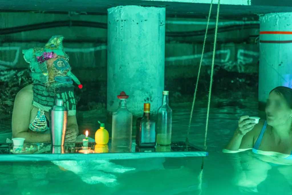 Die Unterwassergalerie liegt an der sogenannten Goldküste der Superreichen. Eine geheime Stelle am Zürichsee. Sie eignet sich Raum an und stellt Besitzverhältnisse in Frage. Eine verkehrte Welt, eine Utopie von gerechter Verteilung.