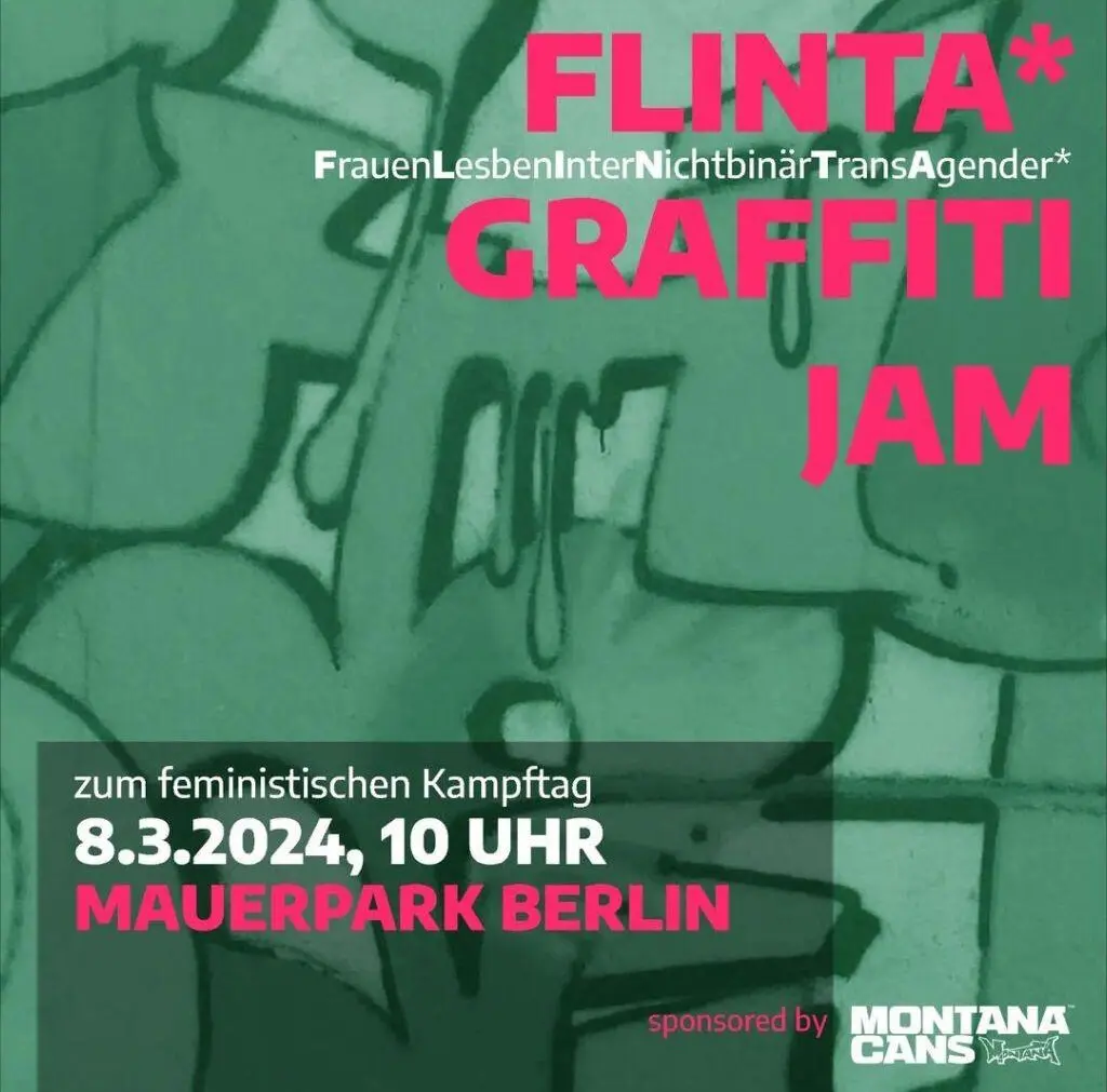 Graffiti Jam zum Frauentag im Mauerpark für Flinta (FrauenLesbenInterNichtbinär TransAgender*).Ab 10uhr