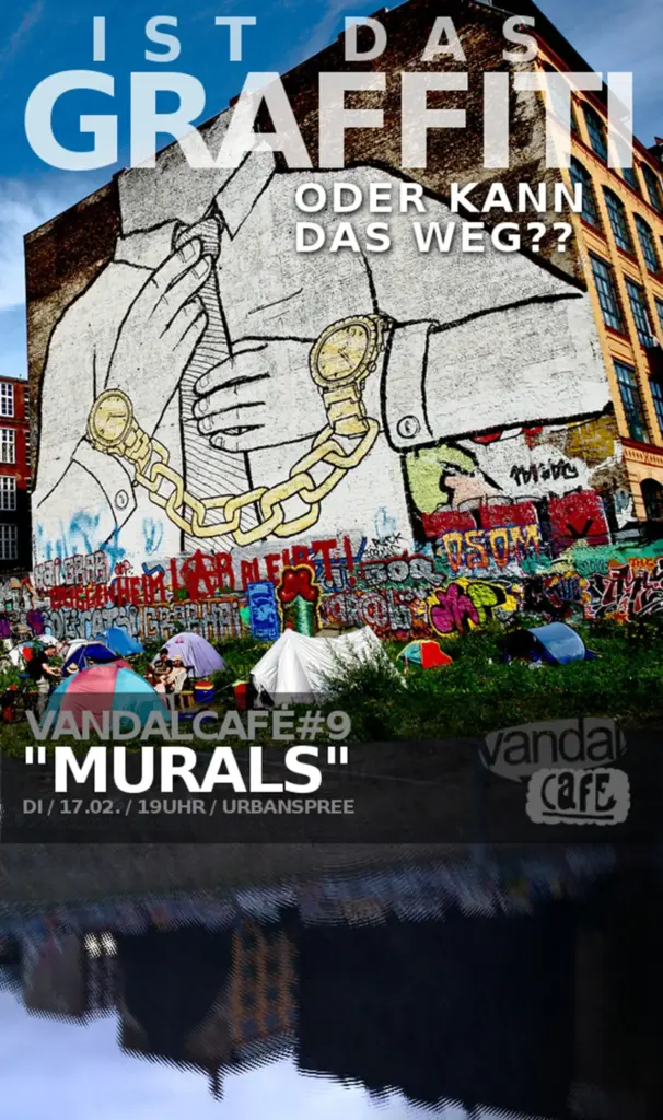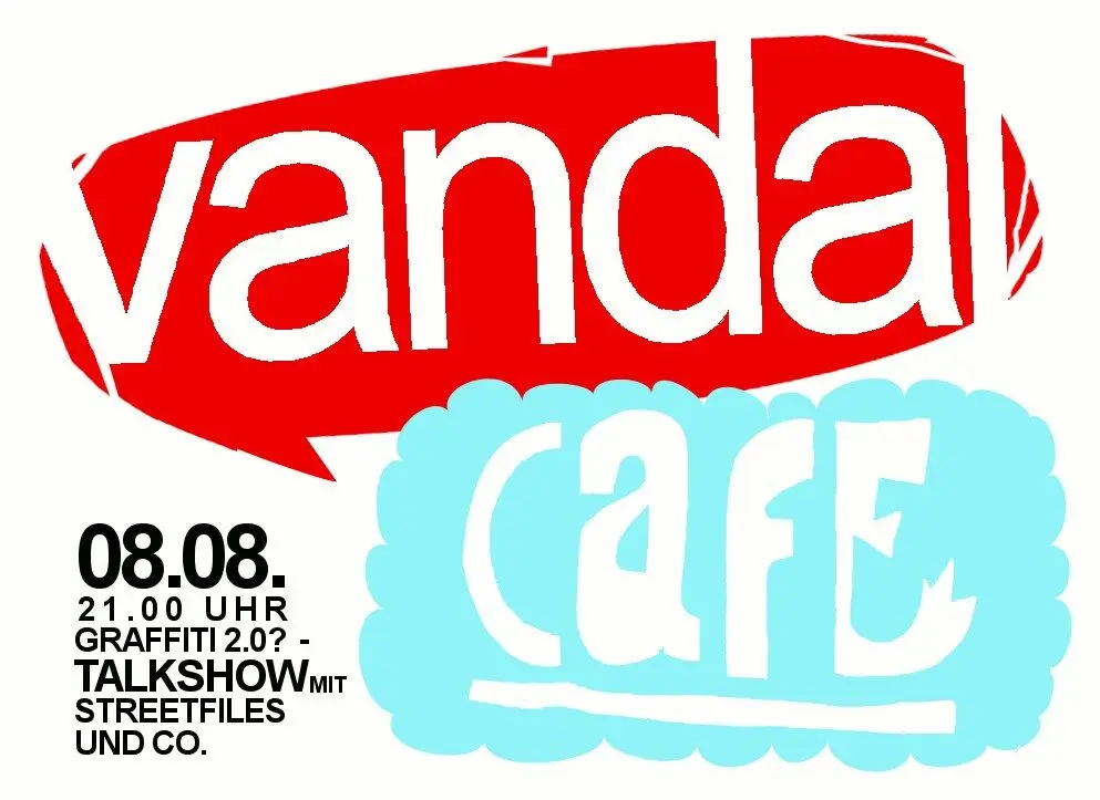 In unregelmäßigen Abständen präsentieren sich im Vandal Café waschechte Experten und blutige Laien im Talkshow-Prinzip zu wechselnden Themen rund um Graffiti, Streetart und darüber hinaus.