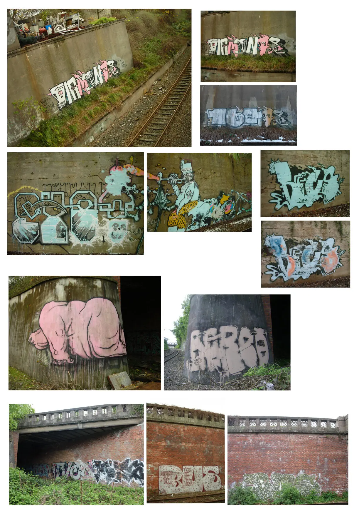 Die Graffitis haben die Brache zum Spot gemacht. Das Verlangen direkt vor den Graffitis zu stehen, haben Zugänge eröffnet. Die Wege weiter zugehen, hat ein Netz entstehen lassen und neue Ein- und Ausstiege gezeigt. Die Kontinuität der Frequentierung/Beobachtung hat die Veränderung des Raums beobachten können. Der Teil der Stadt ist zu meiner geworden.