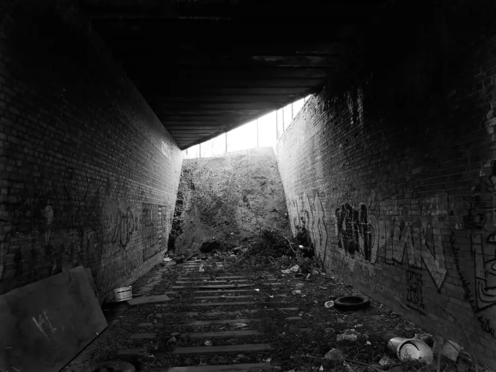 Ein Schlüssel in einem verlassenen und zugeschütteten Eisenbahntunnel im Industriegebiet in Berlin-Neukölln.