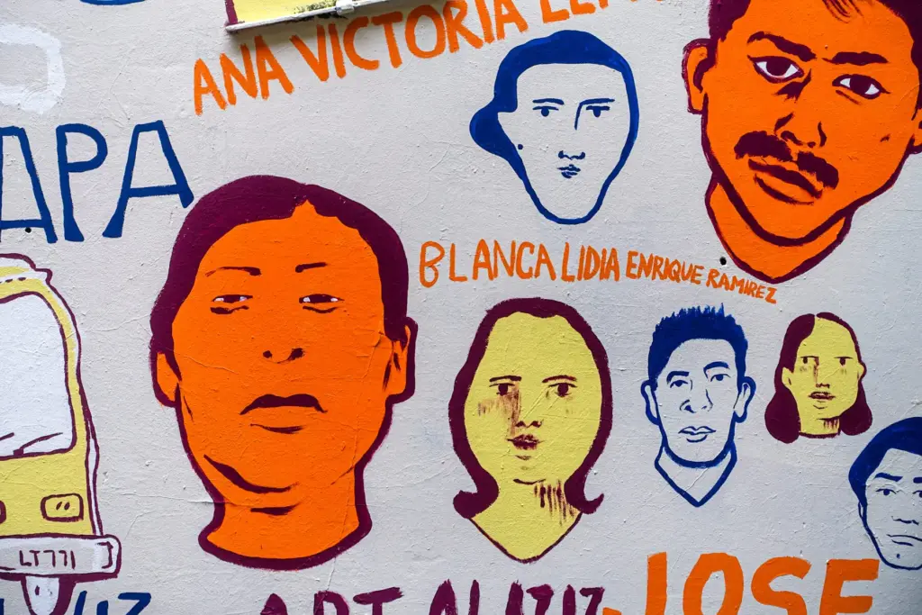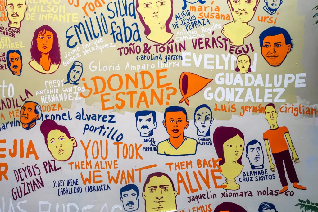 Eine interaktive Karte zum Wandbild mit Zuordnungen der Gesichter zu realen Personen gibt es auf der Website der Koalition gegen das Verschwindenlassen.