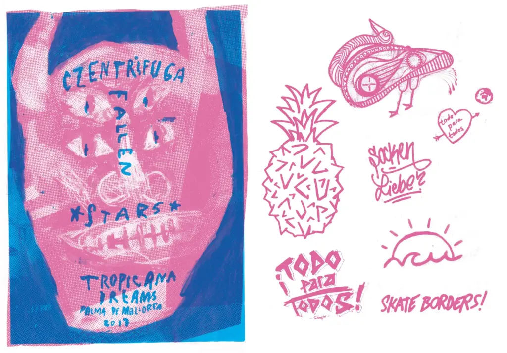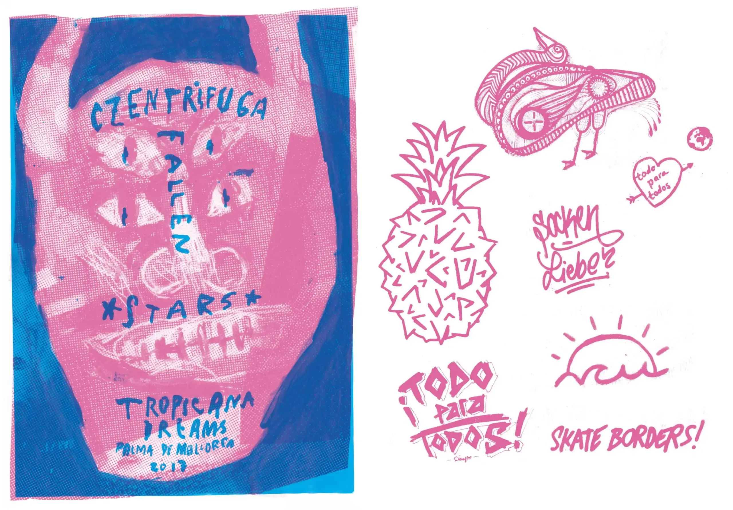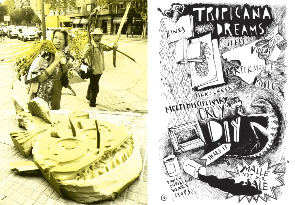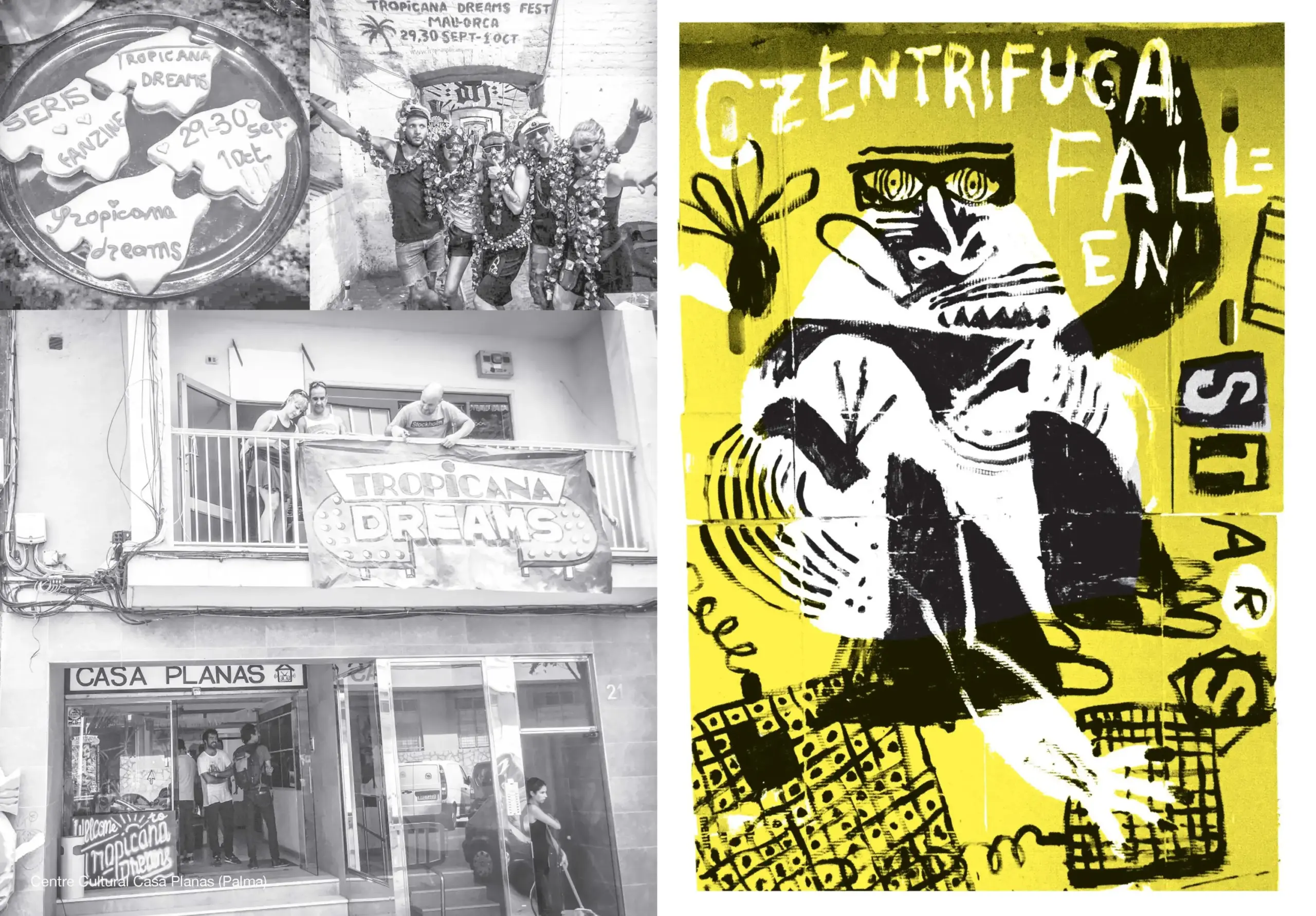 In the Mediterranien heat and paper curling humidity of Mallorca, a frenzied malaria-like vision gripped the brains of a merry band of island-culture connoisseurs: an open minded international event dedicated to self-produced publications, including fanzines, posters, cassettes, vinyl records, exhibitions, installations, live performances & music, bringing together people of all kinds from all corners of the planet – a mutually supporting multidisciplinary mash-up with the goal of exchanging ideas and culture „Tropicana Dreams“.