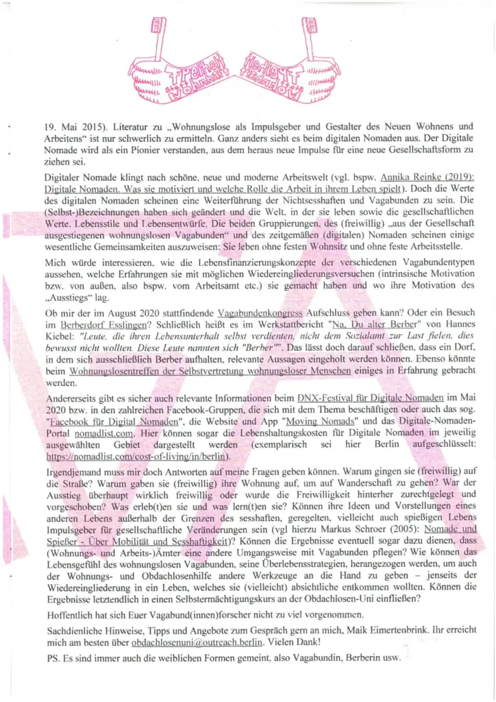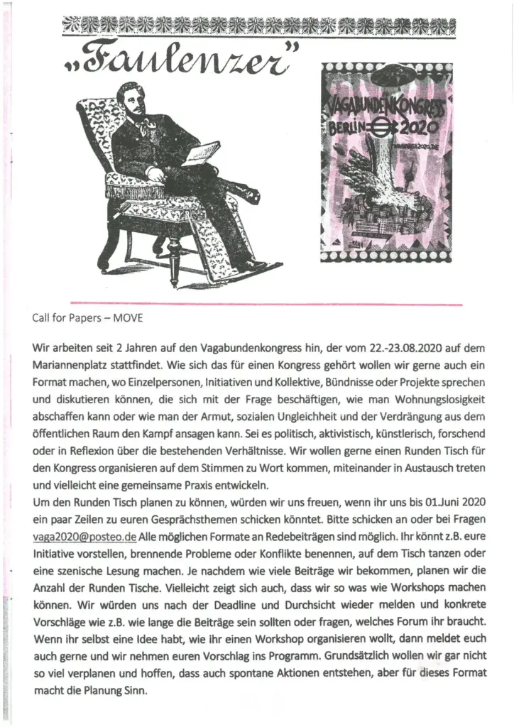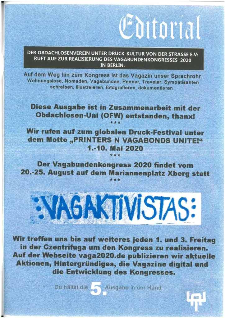 Das 5. Magazin zum Vagabundenkongress. Texte und Grafiken zur Vagabunden-Bewegung und Selbstorganisation von Obdachlosen. Herausgegeben von der Czentrifuga.